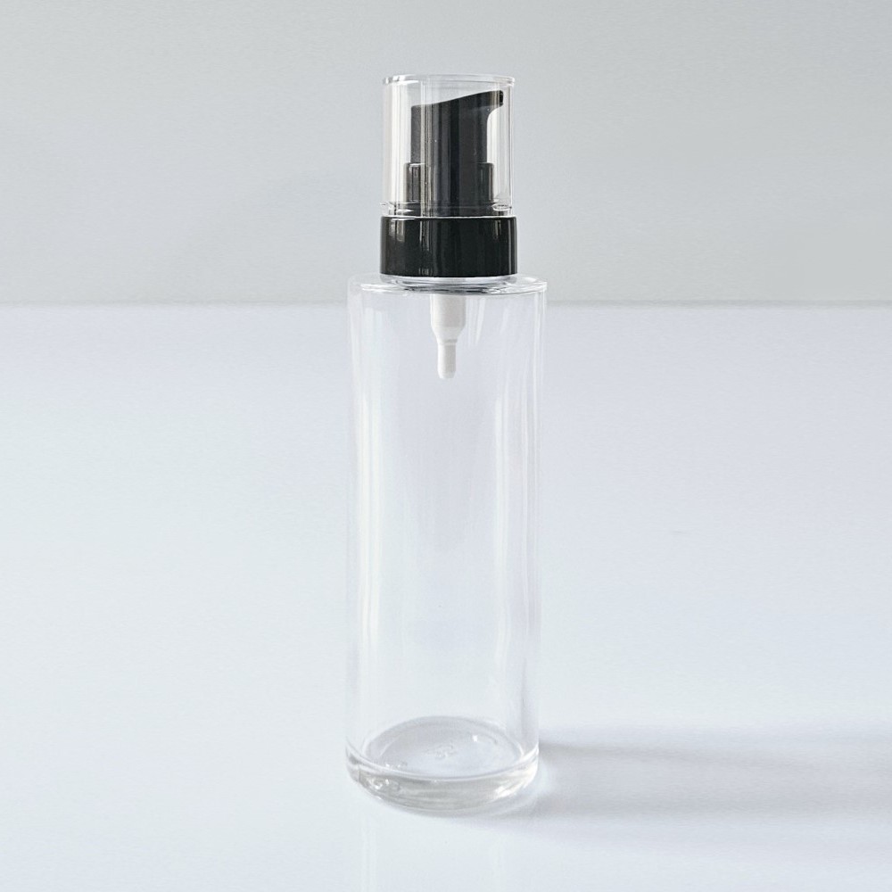 Steklenička PURE 100 ml s črno pumpico SkyCream je elegantna steklena embalaža, namenjena za tekoče kreme, losjone in gele. Prozorno steklo omogoča, da izdelek lepo pride do izraza, črna pumpica pa zagotavlja natančno in higiensko doziranje. Pumpica je opremljena s prozornim pokrovčkom, ki preprečuje nenamerno aktiviranje ter omogoča varno shranjevanje.